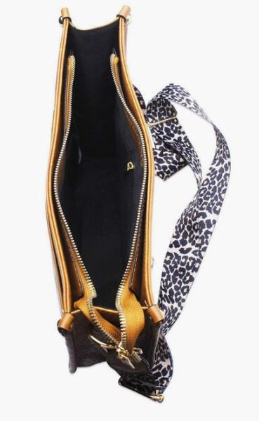 Ladies zippered pocket & interior pocket. Shoulder strap: 30"-50" buckle to buckle. Gold hardware. Perfect for everyday use & travel. 9" W x 9" H x 3.5" D.