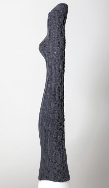 This pair of gray knee-highs is crafted from 100% acrylic, making them the perfect choice for any season. Their flexible fabric ensures all-day comfort, while they offer an elegant accent to any look whether layered or on display. Crafted in China.